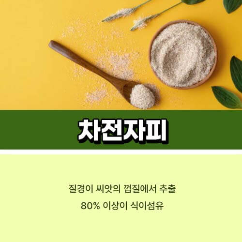 차전자피는 질경이 씨앗의 껍질에서 추출된 것으로 건강에 매우 좋다고 알려져 있습니다. 이것은 80% 이상이 식이섬유로 이루어져 있어, 다이어트나 변비 예방에 좋은 성분입니다.