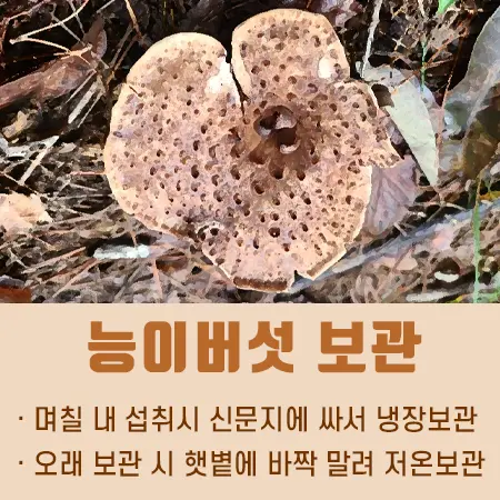 능이버섯 산행이나 시장, 마트에서 구매했을 때 능이버섯 보관 방법에 대해 알아보겠습니다. 며칠 내로 먹는다면 신문지에 싸서 냉장 보관하시면 되고, 오래 두고 먹는다면 햇볕에 말리는 동안 벌레들이 떨어져 나갈 수 있게 바짝 말려서 냉장이나 냉동으로 보관합니다. 특히 말리면 향이 더 진해지고 씹는 맛 또한 좋아집니다.
